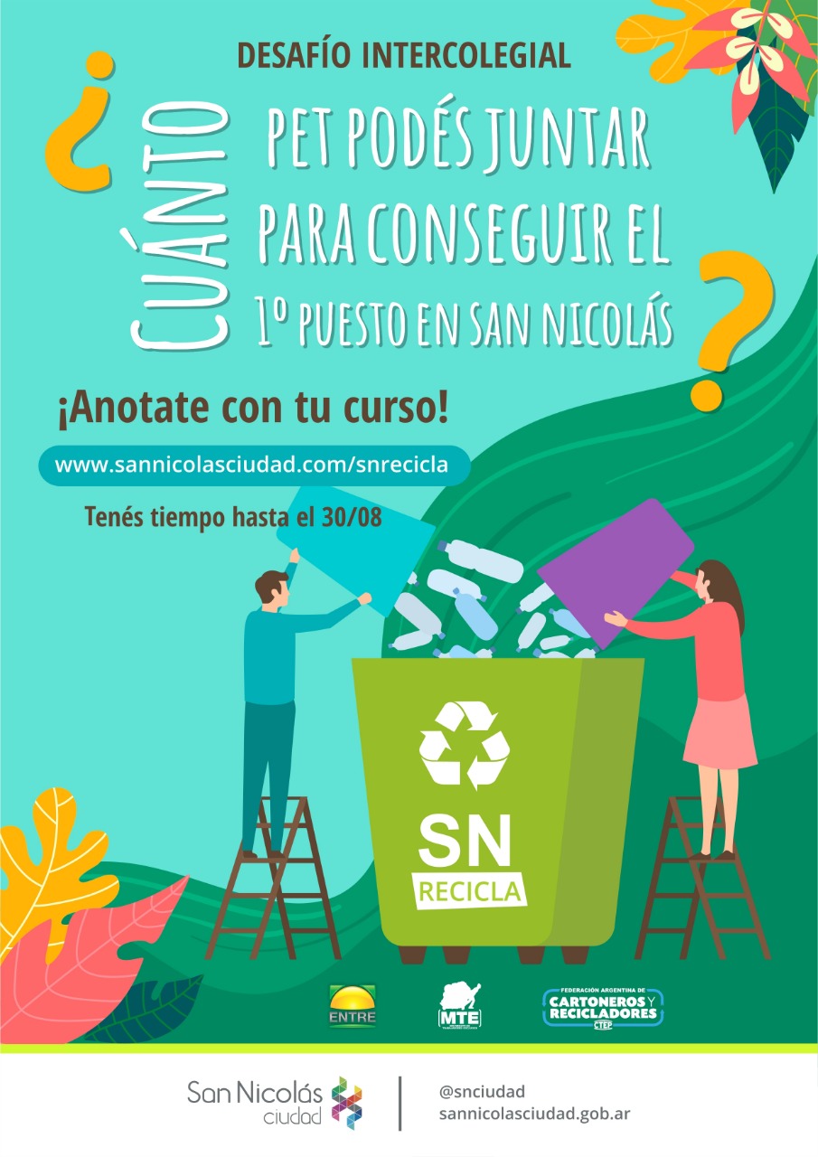 Para lorar conciencia sobre las cantidades de residuos producidos y la posibilidad de transformarlos en recursos reciclables SN Recicla en las Escuelas invita a todos los cursos del último año de secundaria a a juntar botellas de PET. El grupo ganador obtiene como premio un viaje de fin de curso además de premios semanales sorpresa.