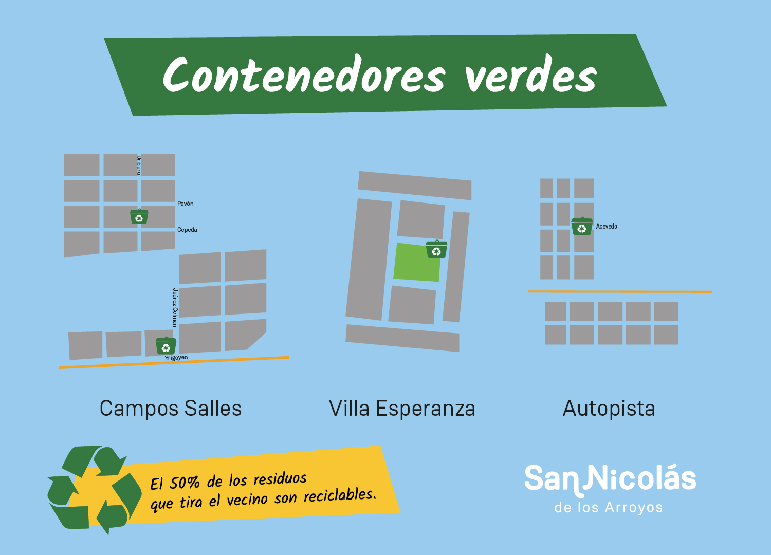 Son 4 los contenedores que se instalaron en la delegación y en ellos, sólo se pueden depositar residuos reciclables, limpios y secos, que serán retirados por la Cooperativa de recuperadores en cada uno de los puntos verdes.