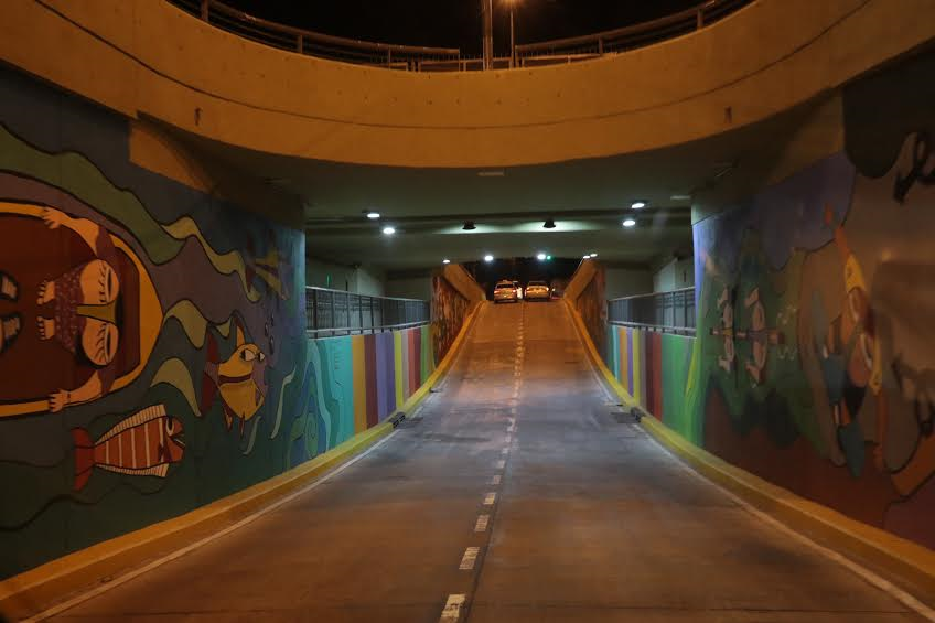 El viaducto de calle Mitre tiene un mural doble pintado por el artista Claudio Baldrich